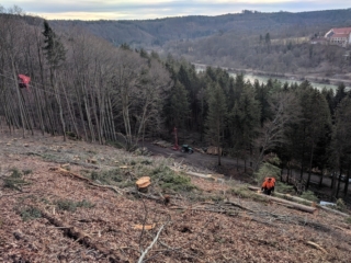 Unsere Seilkrananlagen kommen überall dort zum Einsatz, wo herkömmliche Maschinen an ihre Grenzen stoßen. Steilhänge, schwer zugängliche Moorgebiete, nasse Flächen, Flussufer oder empfindliche Waldstandorte erfordern spezielles Know-how und technische Ausstattung. Genau hier liegt unsere Stärke. Durch den gezielten Einsatz von Seilkrantechnik schonen wir den Waldboden, reduzieren Flurschäden auf ein Minimum und garantieren gleichzeitig höchste Arbeitssicherheit.
